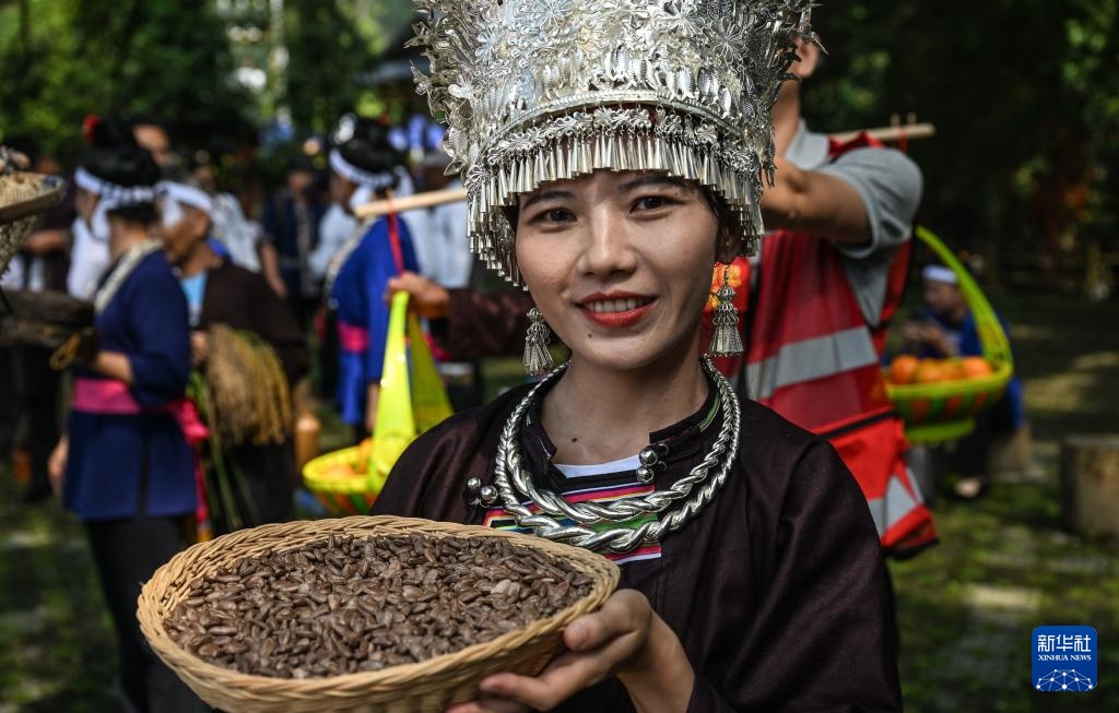 10月17日,广西三江侗族自治县5个乡镇的群众聚集在良口镇禅口村,进行丰富多彩的丰收节活动。
