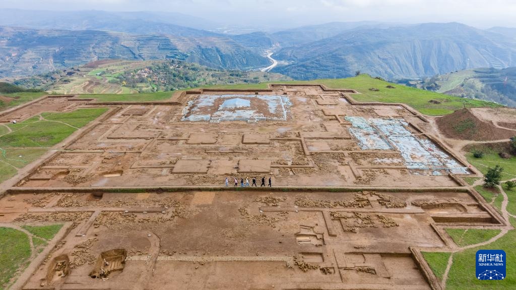 这是10月15日拍摄的甘肃省陇南市理县四角坪遗址考古发掘现场(无人机照片)。