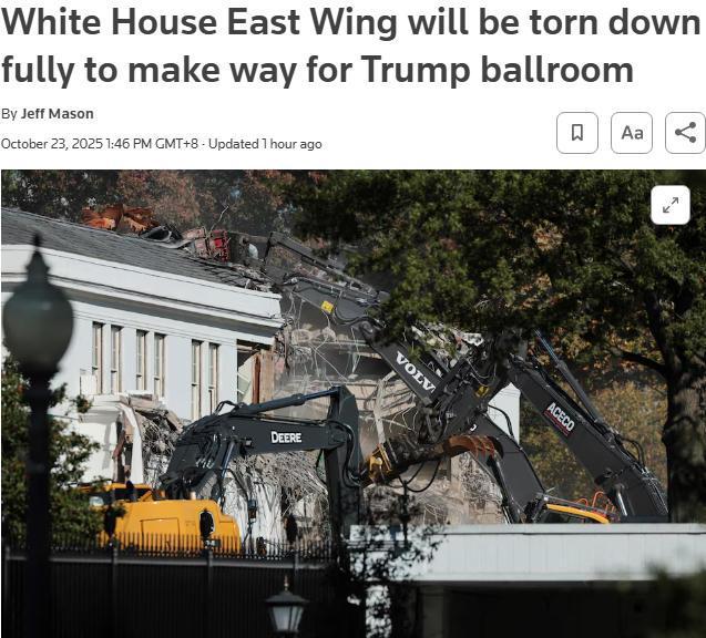 路透社指出,美国最具历史意义的建筑之一被部分拆除,引发许多民主党人的愤怒抗议,并质疑特朗普政府是否遵循了正确的程序。白宫驳斥了这些批评,称其“令人愤慨”。